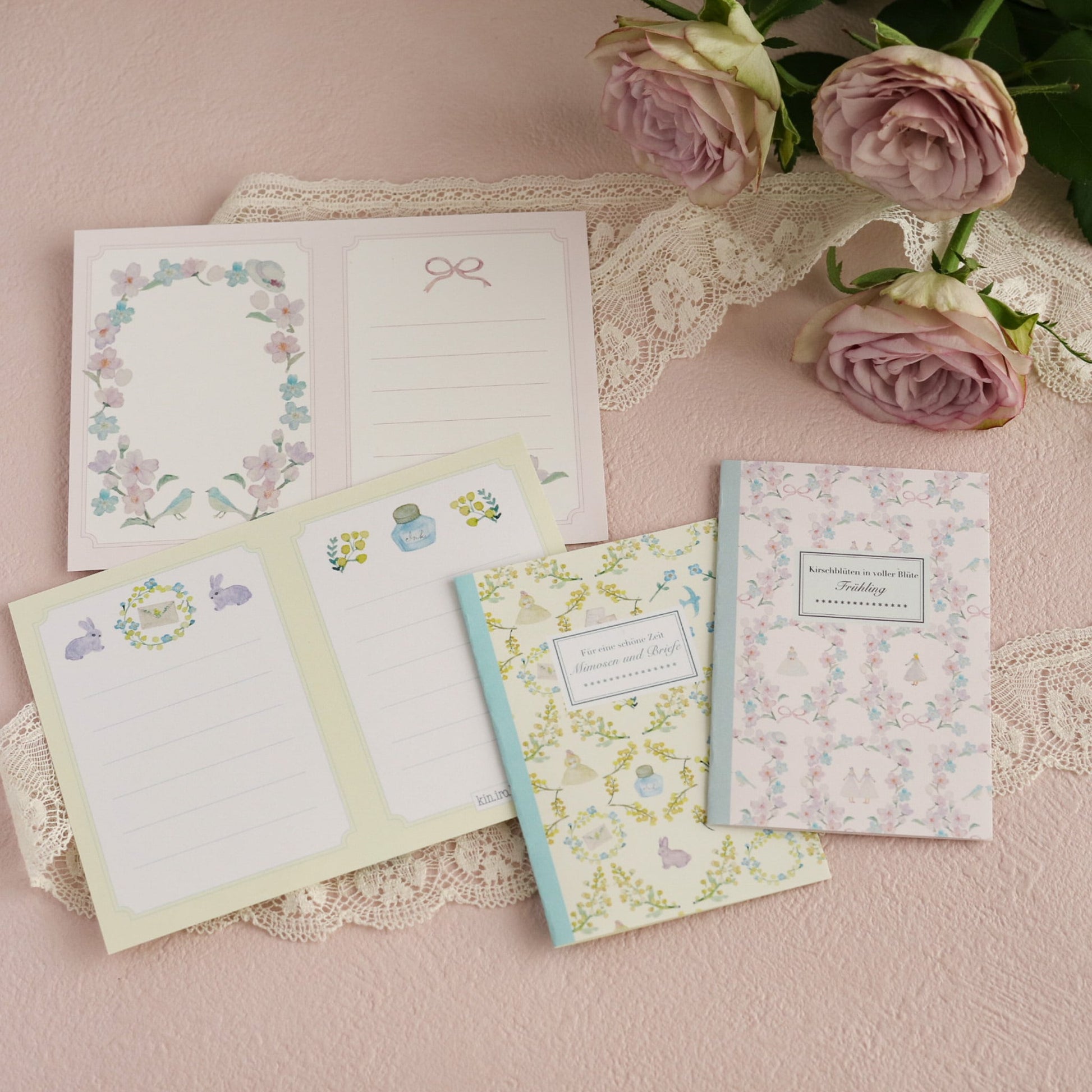 kin.iro.hitode(キンイロヒトデ) 洋書みたいなメッセージカード 桜と青い鳥 x ミモザとお手紙